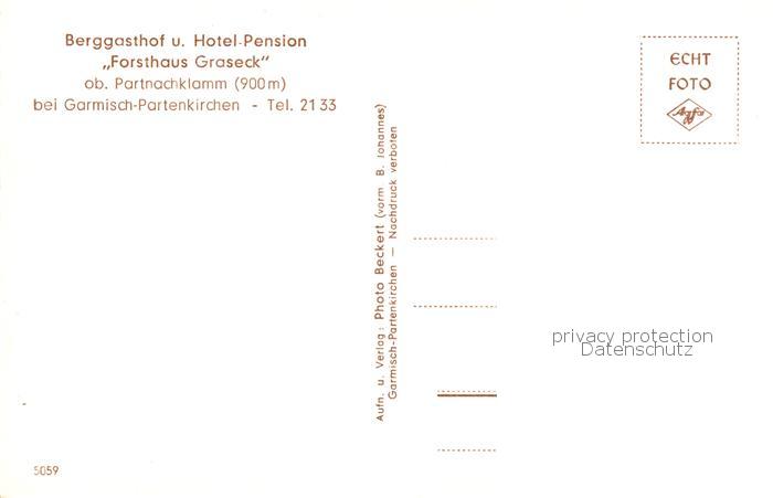 73796922 GARMISCH-PARTENKIRCHEN Bayern Berggasthof Hotel Pension Forsthaus Graseck Winterlandschaft Alpen postalisch nicht gelaufen Erhaltung siehe scans [FriedD77] Frie Katcode 11110009180117