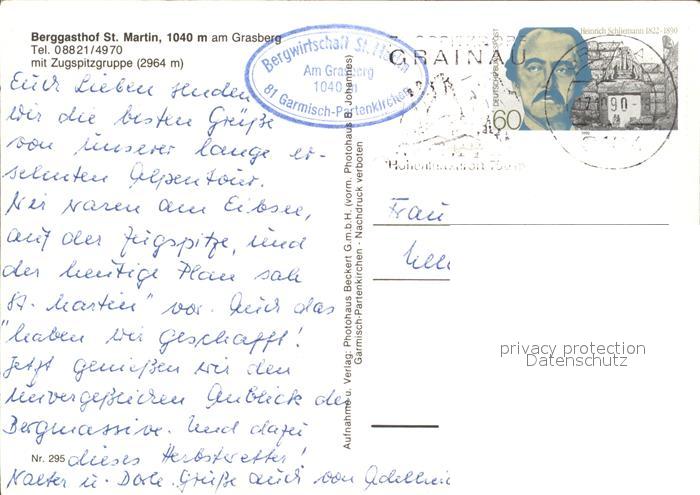 72000680 alte Postkarte GARMISCH-PARTENKIRCHEN Bayern Berggasthof St Martin Grasberg Zugspitzgruppe postalisch gelaufen Erhaltung siehe scans KatCode: 11110009180117