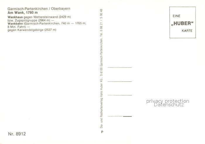 73181884 GARMISCH-PARTENKIRCHEN Bayern Berghaus Wankhaus Sonnenterrasse Fernsicht Alpenpanorama Bergbahn Huber Karte Nr 8912 postalisch nicht gelaufen Erhaltung siehe scans [FriedD77] KatCode: 11110009180117
