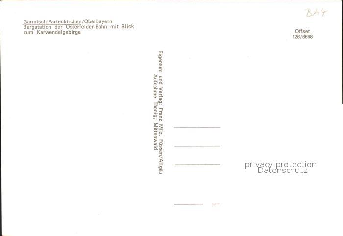 71931254 GARMISCH-PARTENKIRCHEN Bayern Bergstation Osterfelder Bahn Karwendelgebirge postalisch nicht gelaufen Erhaltung siehe scans KatCode: 11110009180117