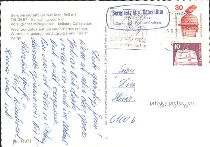 71994481 alte Postkarte GARMISCH-PARTENKIRCHEN Bayern Bergwirtschaft Gamshuette postalisch gelaufen Erhaltung siehe scans KatCode: 11110009180117