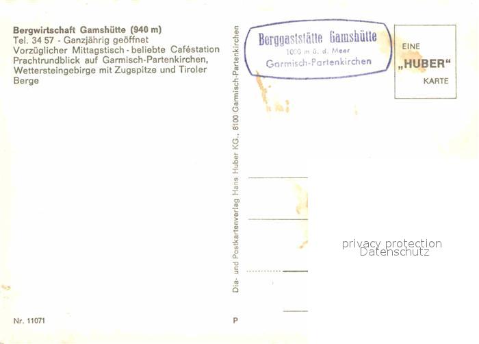 72682191 GARMISCH-PARTENKIRCHEN Bayern Bergwirtschaft Gamshuette postalisch nicht gelaufen Erhaltung siehe scans [AndreD76] KatCode: 11110009180117