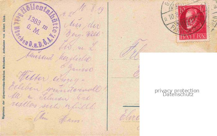 74150473 alte Postkarte GARMISCH-PARTENKIRCHEN Bayern Blick von der Hoellentalhuette auf Zugspitze und Riffelspitzen postalisch gelaufen Erhaltung siehe scans [FriedD77] KatCode: 11110009180117