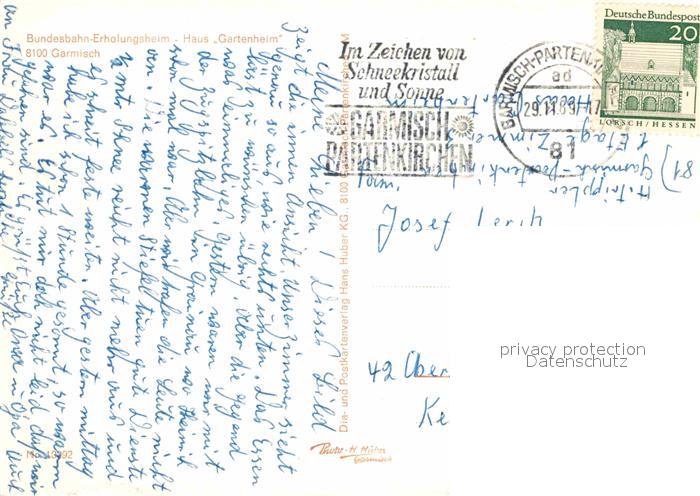 72836470 alte Postkarte GARMISCH-PARTENKIRCHEN Bayern Bundesbahn-Erholungsheim Haus Gartenheim postalisch gelaufen Erhaltung siehe scans [PaolaD17] KatCode: 11110009180117