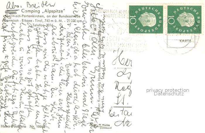 73744341 GARMISCH-PARTENKIRCHEN Bayern Camping Alpspitze mit Zugspitzgruppe postalisch gelaufen Erhaltung siehe scans [WerneD78] alte Postkarte Wern Katcode 11110009180117