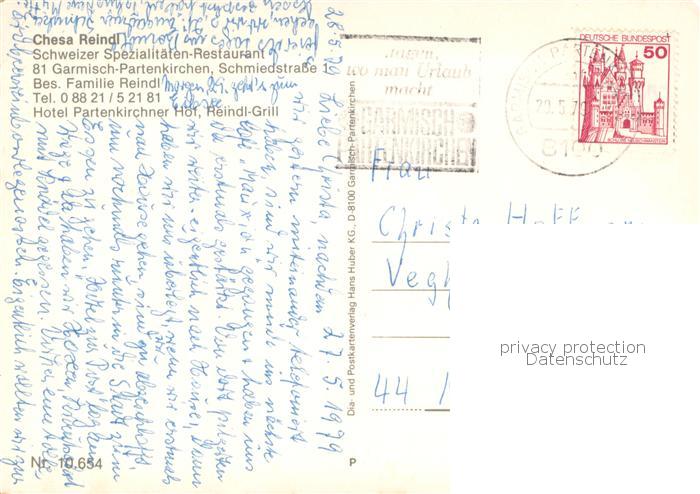 73779912 GARMISCH-PARTENKIRCHEN Bayern Chesa Reindl Hotel Partenkirchner Hof postalisch gelaufen Erhaltung siehe scans [WerneD78] alte Postkarte Wern Katcode 11110009180117