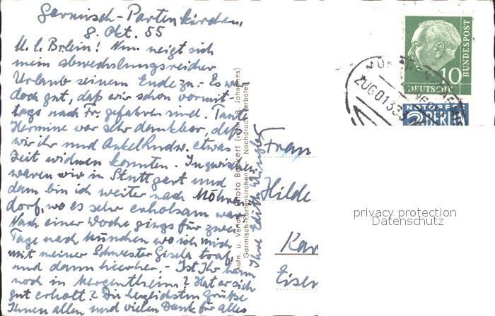 72270980 alte Postkarte GARMISCH-PARTENKIRCHEN Bayern Die Alpspitze postalisch gelaufen Erhaltung siehe scans KatCode: 11110009180117