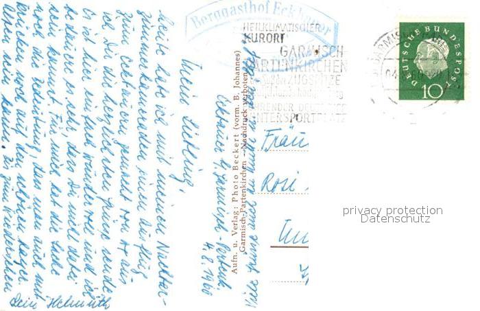 73107833 alte Postkarte GARMISCH-PARTENKIRCHEN Bayern Eckbauer Berggasthof postalisch gelaufen Erhaltung siehe scans [WerneD78] KatCode: 11110009180117
