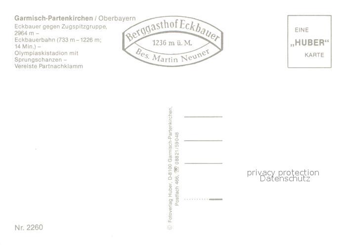 72961256 GARMISCH-PARTENKIRCHEN Bayern Eckbauer mit Zugspitzgruppe Gondelbahn Sprungschanzen Partnachklamm postalisch nicht gelaufen Erhaltung siehe scans [WerneD78] KatCode: 11110009180117