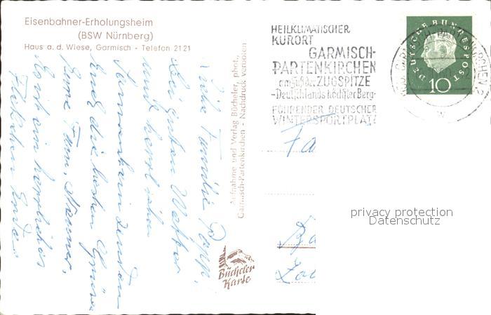 72010186 alte Postkarte GARMISCH-PARTENKIRCHEN Bayern Eisenbahn-Erholungsheim postalisch gelaufen Erhaltung siehe scans KatCode: 11110009180117