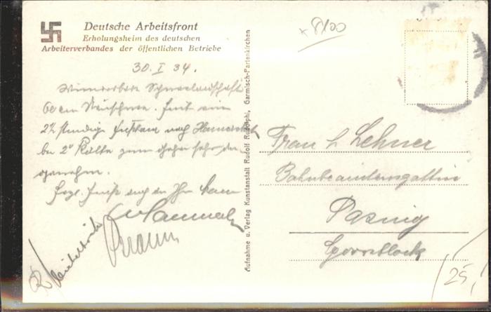 40954584 GARMISCH-PARTENKIRCHEN Bayern [?] Erholungsheim NZ4 postalisch gelaufen Alte Ansichtskarte Postkarte alte Postkarte Katcode 11110009180117