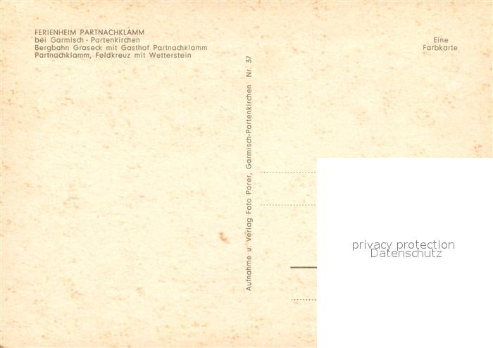 73047802 GARMISCH-PARTENKIRCHEN Bayern Ferienheim Partnachklamm Bergbahn Graseck Gasthof Feldkreuz postalisch nicht gelaufen Erhaltung siehe scans [KathaD81] KatCode: 11110009180117