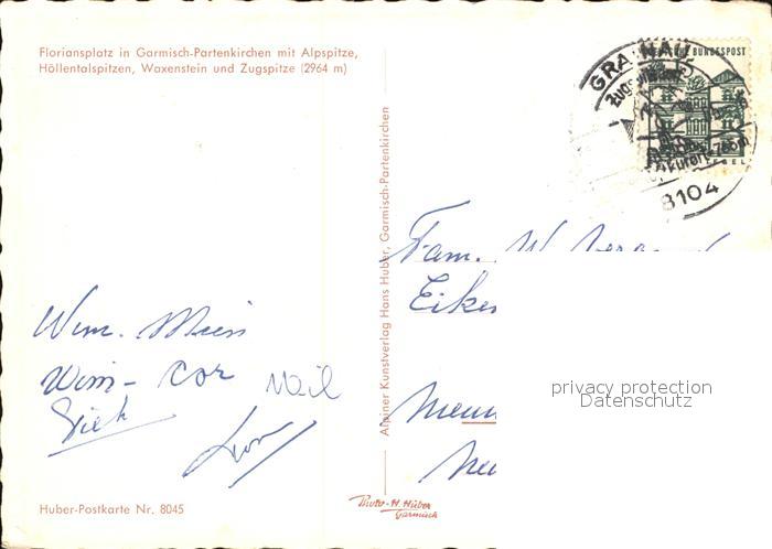 72542401 alte Postkarte GARMISCH-PARTENKIRCHEN Bayern Floriansplatz Alpspitze Hoellentalspitzen Waxenstein Zugspitze postalisch gelaufen Erhaltung siehe scans [KathaD75 kv015box] KatCode: 11110009180117