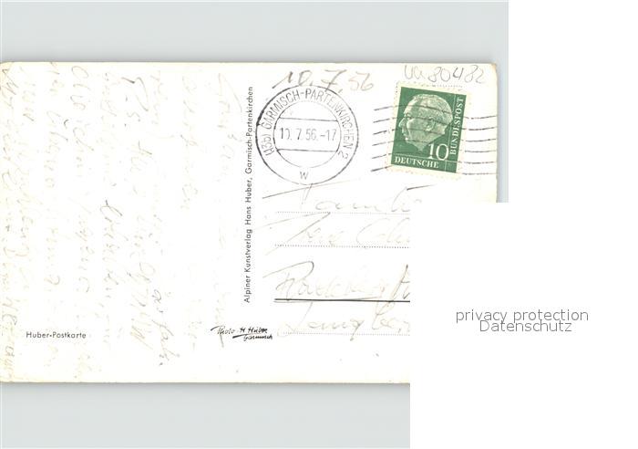 71922677 alte Postkarte GARMISCH-PARTENKIRCHEN Bayern Floriansplatz mit Zugspitze postalisch gelaufen Erhaltung siehe scans KatCode: 11110009180117