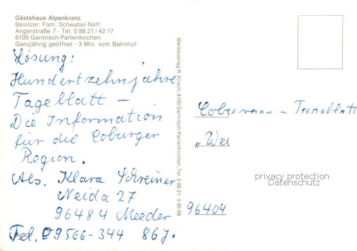 73785592 GARMISCH-PARTENKIRCHEN Bayern Gaestehaus Alpenkreuz Aussenansicht postalisch nicht gelaufen Erhaltung siehe scans [LiesaD40] Lies Katcode 11110009180117