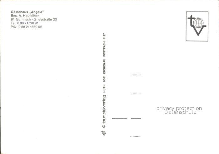 72395419 GARMISCH-PARTENKIRCHEN Bayern Gaestehaus Angela postalisch nicht gelaufen Erhaltung siehe scans KatCode: 11110009180117