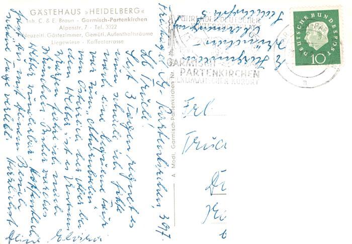 73894572 GARMISCH-PARTENKIRCHEN Bayern Gaestehaus Heidelberg Gastraum Panorama postalisch gelaufen Erhaltung siehe scans [WerneD78] alte Postkarte Wern Katcode 11110009180117