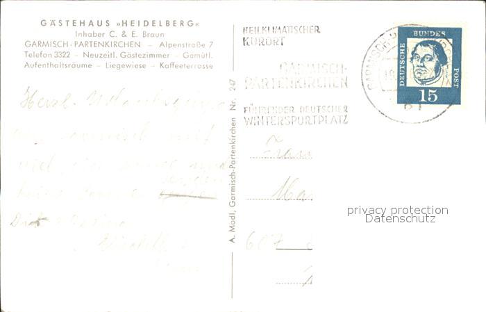 71900854 alte Postkarte GARMISCH-PARTENKIRCHEN Bayern Gaestehaus Heidelberg Winterimpressionen Alpen postalisch gelaufen Erhaltung siehe scans KatCode: 11110009180117
