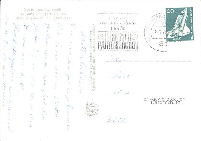 72085292 alte Postkarte GARMISCH-PARTENKIRCHEN Bayern Gaestehaus Kornmueller postalisch gelaufen Erhaltung siehe scans KatCode: 11110009180117