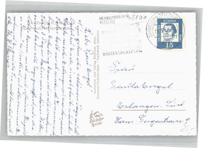 40744010 GARMISCH-PARTENKIRCHEN Bayern Gaestehaus Kornmueller x postalisch gelaufen Alte Ansichtskarte Postkarte alte Postkarte Katcode 11110009180117