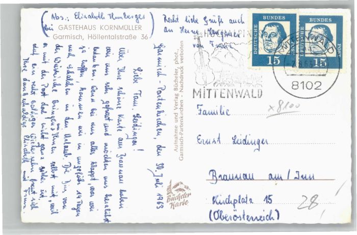 40744037 GARMISCH-PARTENKIRCHEN Bayern Gaestehaus Kornmueller x postalisch gelaufen Alte Ansichtskarte Postkarte alte Postkarte Katcode 11110009180117