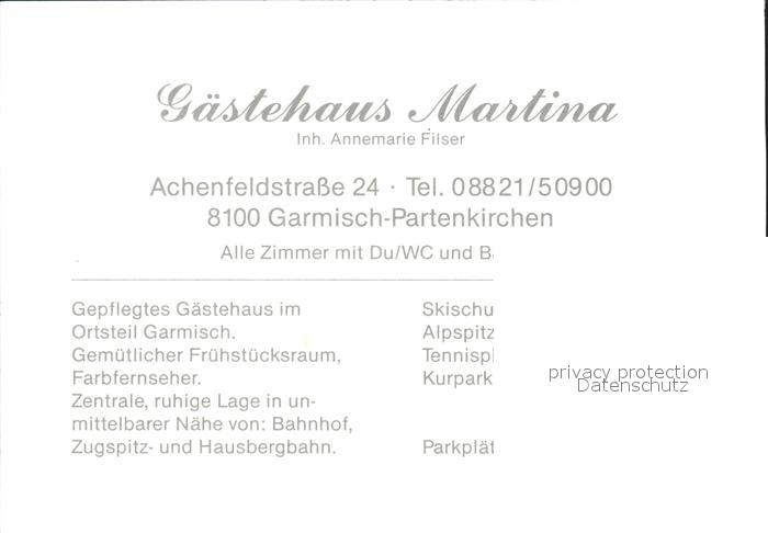 72142738 GARMISCH-PARTENKIRCHEN Bayern Gaestehaus Martina postalisch nicht gelaufen Werbekarte (keine Postkarte) Erhaltung siehe scans KatCode: 11110009180117