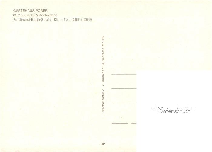 73689558 GARMISCH-PARTENKIRCHEN Bayern Gaestehaus Porer postalisch nicht gelaufen Erhaltung siehe scans [WerneD78] KatCode: 11110009180117