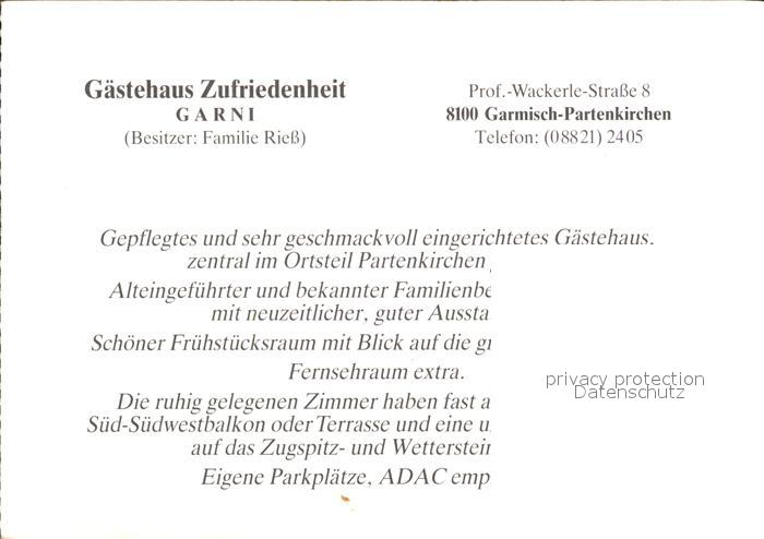 72339372 GARMISCH-PARTENKIRCHEN Bayern Gaestehaus Zufriedenheit postalisch nicht gelaufen Werbekarte (keine Postkarte) Erhaltung siehe scans KatCode: 11110009180117