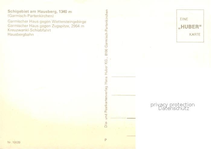 73230392 GARMISCH-PARTENKIRCHEN Bayern Garmischer Haus Hausberg Bergbahn Wintersportplatz Alpen Huber Karte Nr 10039 postalisch nicht gelaufen Erhaltung siehe scans [FriedD77] KatCode: 11110009180117