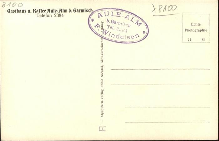 40933139 GARMISCH-PARTENKIRCHEN Bayern Gasthaus Aulealm postalisch nicht gelaufen Alte Ansichtskarte Postkarte Katcode 11110009180117