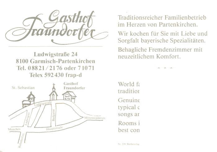 73913976 GARMISCH-PARTENKIRCHEN Bayern Gasthof Fraundorfer Gaststube Zimmer postalisch nicht gelaufen Werbekarte (keine Postkarte) Erhaltung siehe scans [FriedD77] Werbekarte (keine Postkarte) Frie Katcode 11110009180117
