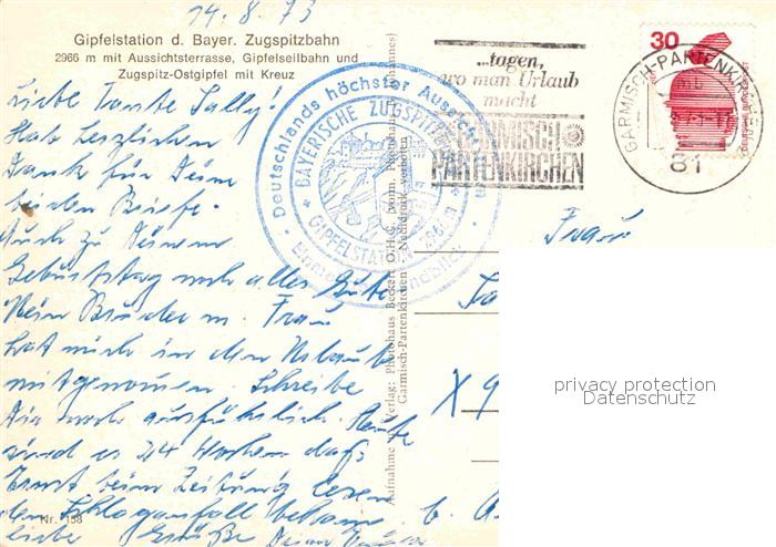 72842342 alte Postkarte GARMISCH-PARTENKIRCHEN Bayern Gipfelstation Bayerische Zugspitzbahn Seilbahn postalisch gelaufen Erhaltung siehe scans [PaolaD17] KatCode: 11110009180117
