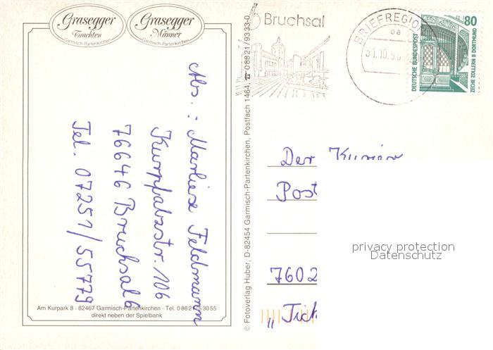 72937241 alte Postkarte GARMISCH-PARTENKIRCHEN Bayern Grasegger Trachten Kaufhaus postalisch gelaufen Erhaltung siehe scans [WerneD78] KatCode: 11110009180117