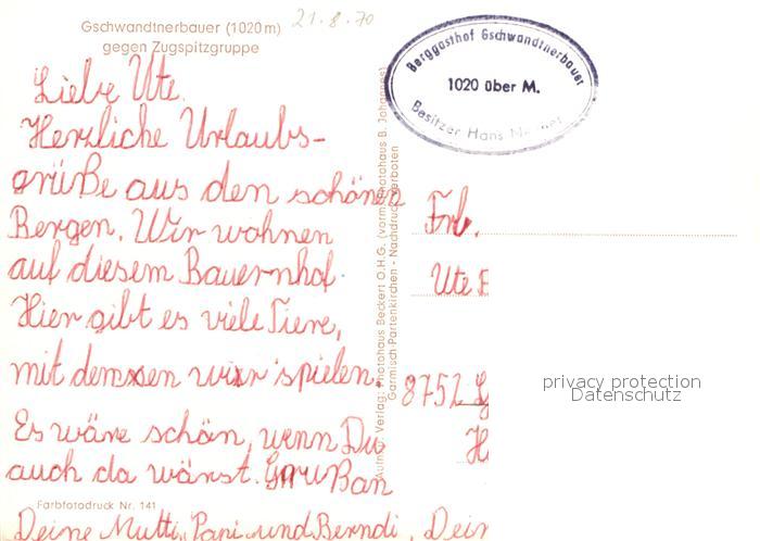 72972651 GARMISCH-PARTENKIRCHEN Bayern Gschwandtnerbauer Berggasthof gegen Zugspitzgruppe Wettersteingebirge postalisch nicht gelaufen Erhaltung siehe scans [FriedD77] KatCode: 11110009180117