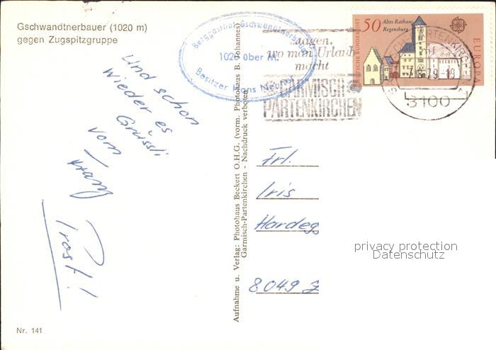 72557515 alte Postkarte GARMISCH-PARTENKIRCHEN Bayern Gschwandtnerbuer Zugspitze postalisch gelaufen Erhaltung siehe scans [KathaD79] KatCode: 11110009180117