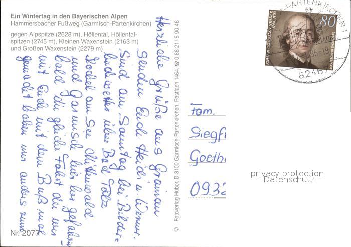 72376134 alte Postkarte GARMISCH-PARTENKIRCHEN Bayern Hammersbacher Fu?weg Alpspitzen postalisch gelaufen Erhaltung siehe scans KatCode: 11110009180117