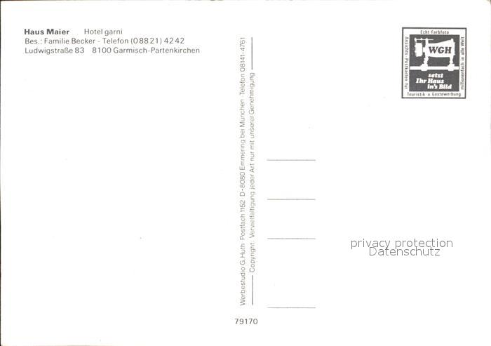 72243543 GARMISCH-PARTENKIRCHEN Bayern Haus Maier Hotel Garni postalisch nicht gelaufen Erhaltung siehe scans KatCode: 11110009180117