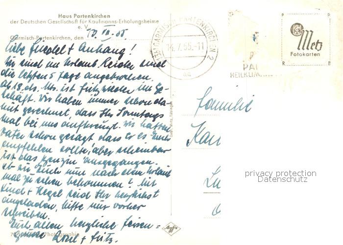 73283010 alte Postkarte GARMISCH-PARTENKIRCHEN Bayern Haus Partenkirchen postalisch gelaufen Erhaltung siehe scans [LiesaD40] KatCode: 11110009180117