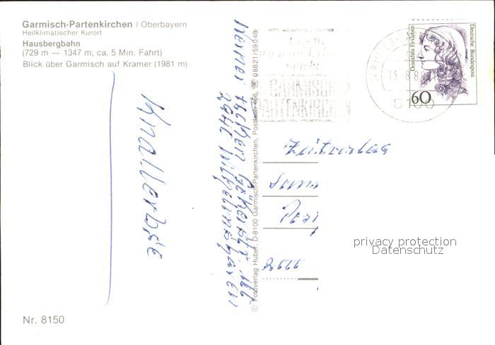 71926852 alte Postkarte GARMISCH-PARTENKIRCHEN Bayern Hausbergbahn Kabinenbahn Blick auf Kramer postalisch gelaufen Erhaltung siehe scans KatCode: 11110009180117