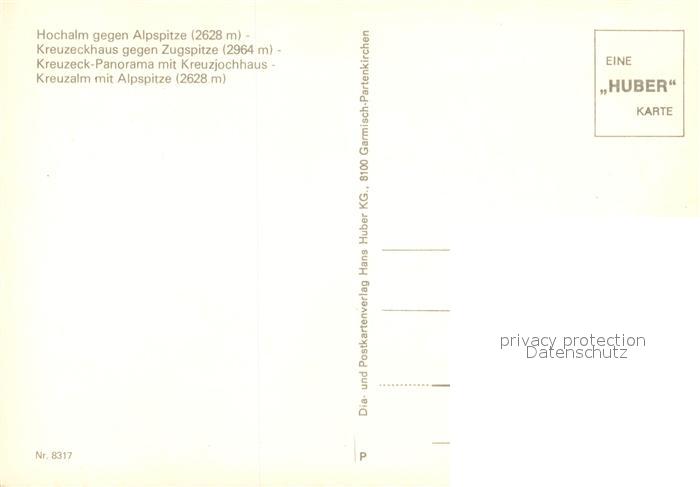 73160600 GARMISCH-PARTENKIRCHEN Bayern Hochalm Alpspitze Kreuzeckhaus Zugspitze Kreuzeckjochhaus Kreuzalm Gebirgspanorama postalisch nicht gelaufen Erhaltung siehe scans [FriedD77] KatCode: 11110009180117