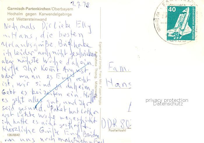 73785603 GARMISCH-PARTENKIRCHEN Bayern Hochalm geg. Karwendelgebirge u. Wettersteinwand postalisch gelaufen Erhaltung siehe scans [LiesaD40] alte Postkarte Lies Katcode 11110009180117