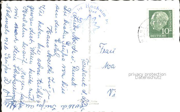 72427177 alte Postkarte GARMISCH-PARTENKIRCHEN Bayern Hochalm mit Wettersteinspitze postalisch gelaufen Erhaltung siehe scans KatCode: 11110009180117