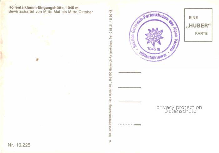 72903473 GARMISCH-PARTENKIRCHEN Bayern Hoellentalklamm Eingangshuette Huber Karte Nr 10225 postalisch nicht gelaufen Erhaltung siehe scans [FriedD77] KatCode: 11110009180117