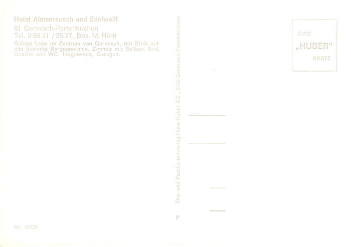 73922966 GARMISCH-PARTENKIRCHEN Bayern Hotel Almenrausch Edelweiss postalisch nicht gelaufen Erhaltung siehe scans [WerneD78] Wern Katcode 11110009180117