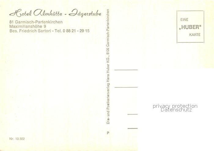 73542464 GARMISCH-PARTENKIRCHEN Bayern Hotel Almhuette Jaegerstube postalisch nicht gelaufen Erhaltung siehe scans [KathaD81] KatCode: 11110009180117