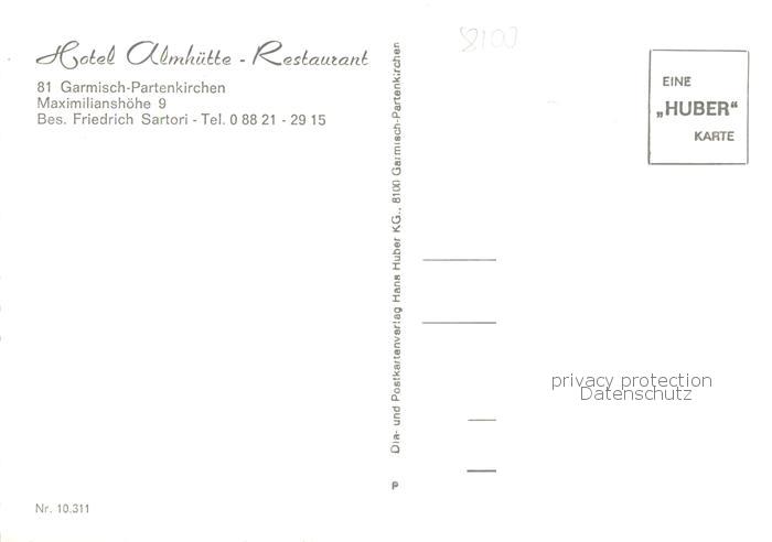 73871063 GARMISCH-PARTENKIRCHEN Bayern Hotel Almhuette Restaurant postalisch nicht gelaufen Erhaltung siehe scans [WerneD78] Wern Katcode 11110009180117