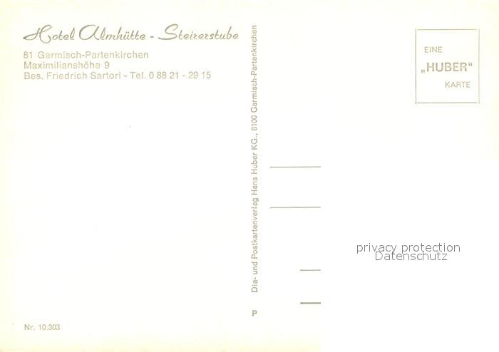 73542465 GARMISCH-PARTENKIRCHEN Bayern Hotel Almhuette Steirerstube postalisch nicht gelaufen Erhaltung siehe scans [KathaD81] KatCode: 11110009180117