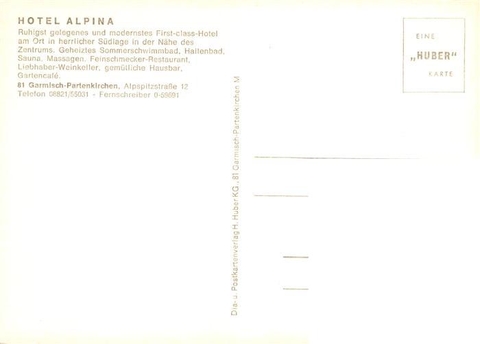 73880978 GARMISCH-PARTENKIRCHEN Bayern Hotel Alpina Schwimmbad Hallenbad postalisch nicht gelaufen Erhaltung siehe scans [WerneD78] Wern Katcode 11110009180117