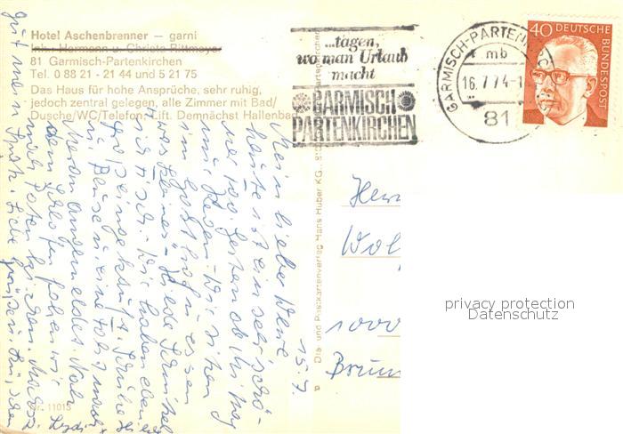 73614939 alte Postkarte GARMISCH-PARTENKIRCHEN Bayern Hotel Aschenbrenner Gaststube Zimmer postalisch gelaufen Erhaltung siehe scans [WerneD78] KatCode: 11110009180117