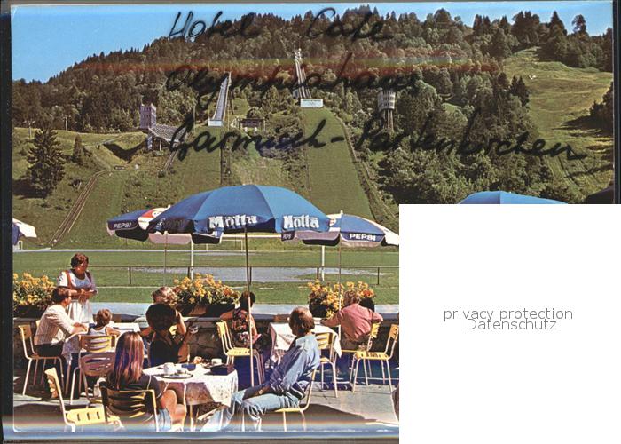 GARMISCH-PARTENKIRCHEN Bayern Hotel Cafe Olympiahaus Terrasse Sprungschanzen